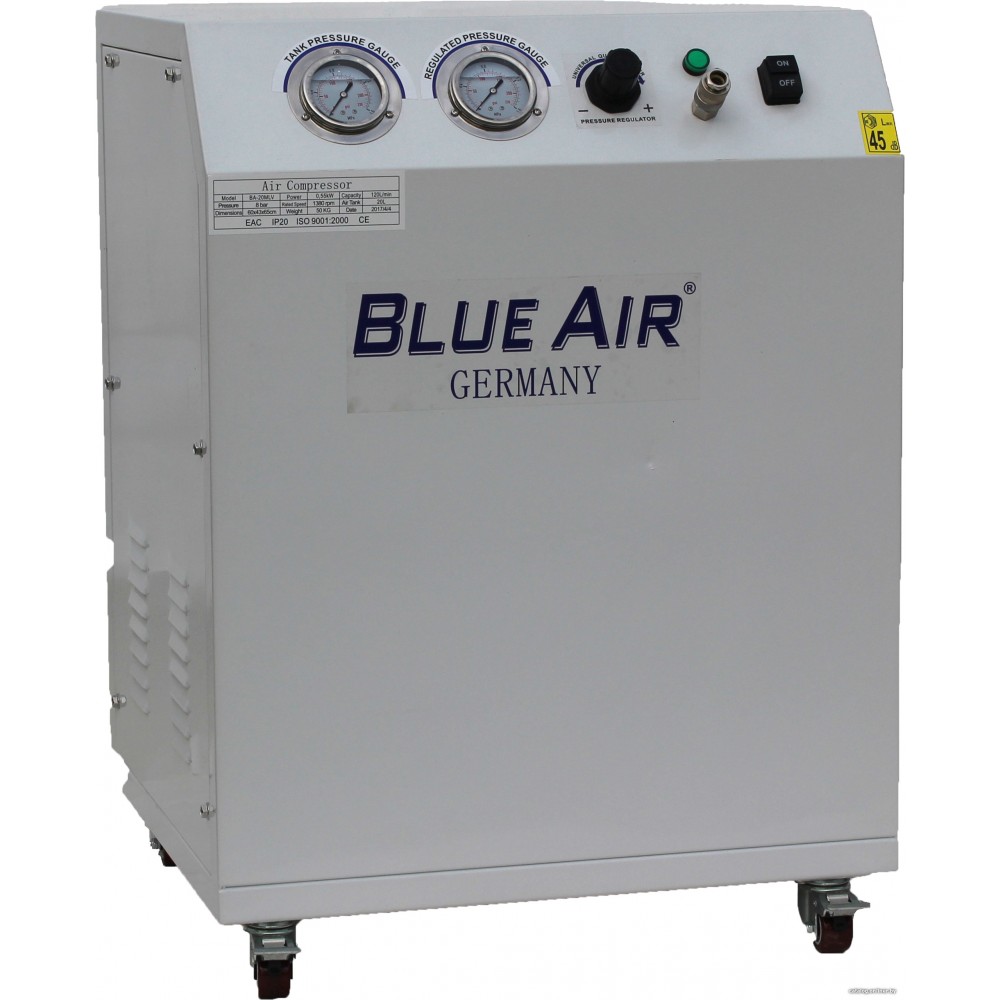 Общая информация Описание Описание Рекламное описание товара, взятое с сайта производителя, в котором кратко сообщается о предназначении и позиционировании модели на рынке. На всех моделях безмасляных компрессоров Blue Air установлены влагоотделители Основные Тип Тип Компрессор — энергетическая машина для сжатия и подачи воздуха или жидкостей (масла, хладагента и др.) под давлением. Компрессоры могут отличаться по принципу работы (поршневой\винтовой и т.д.). Поршневые компрессоры являются самыми распространенными. Основными достоинствами поршневых компрессоров являются их дешевизна и высокая ремонтопригодность. поршневой Тип двигателя электрический Тип смазки Тип смазки Выделяют маслянные и безмасляные компрессоры. Недостатки масляного в том, что, во-первых, из-за высокой скорости мотора возникает необходимость в периодическом ремонте (в основном для замены колец и клапанов), во-вторых, отмечается высокий уровень шума и достаточно большой расход масла (слишком много смазки попадает в сжатый воздух). Недостатки безмасляного — в меньшем сроке службы. безмасляный Привод Привод Применение ременного привода позволяет снизить обороты по сравнению с частотой вращения двигателя. В отличие от компрессоров с прямой передачей той же производительности, у которых частота вращения двигателя и коленчатого вала равны, в компрессорах с ременной передачей обороты снижаются за счет изменения передаточного числа между двигателем и компрессорной головкой. Применение ременного привода существенно повышает ресурс компрессора и позволяет использовать его для более интенсивной работы. прямой Ресивер Ресивер Объем ресивера. 30 л Цвет Цвет Основной цвет модели. серый Технические характеристики Осушитель Осушитель Осушитель воздуха. Мощность Мощность Мощность устройства. 0.75 кВт Производительность на входе Производительность на входе Производительность на входе. 150 л/мин Входное напряжение Входное напряжение Входное напряжение сети, к которой возможно подключение сварочного прибора. Существуют приборы, работающие от однофазной (220 В), трехфазной (380 В) сети, либо от любой из них. 220 В Максимальное давление Максимальное давление Максимальное давление, создаваемое устройством. 8 атм Уровень шума Уровень шума Уровень шума, издаваемый устройством. 45 дБ Конструкция Передвижной Передвижной Возможность перемещать компрессор при помощи колес. колеса Размеры и вес Вес Вес Вес в килограммах. 50 кг