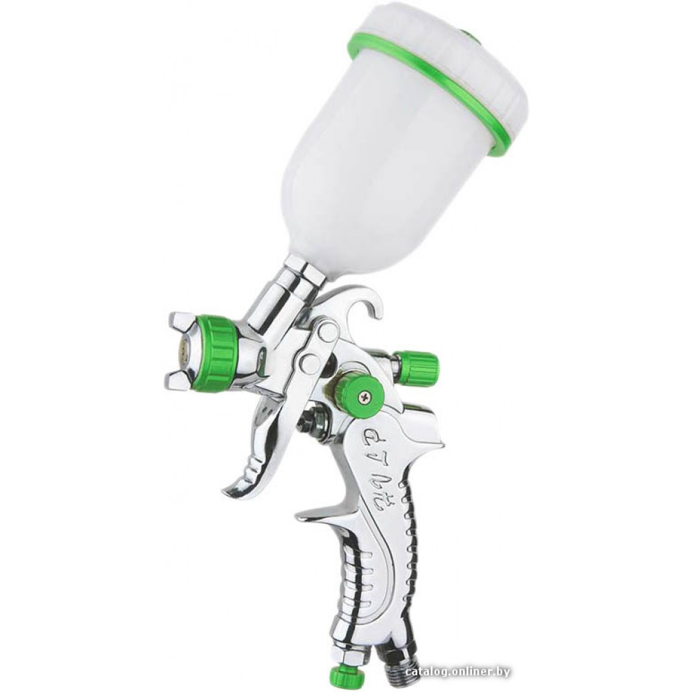 Основные Технология Технология Технология пневматического краскопульта - это метод атомизации (распыления) лакокрасочного покрытия, от которого зависят конструктивные и эксплуатационные особенности устройства, а также, во многом, и конечный результат работы. Существует несколько распространенных технологий краскопультов, из которых чаще всего применяются следующие: 1) HP (High Pressure, высокого давления), традиционная - морально устаревшая технология, обеспечивающая неудовлетворительный по нынешним временам результат. Краска распыляется под большим давлением, что обеспечивает высокую скорость и малый расход воздуха - при низком проценте переноса краски (более 50% распыляется в воздухе), большом затуманивании, высоком замусоривании окрашиваемой поверхности. 2) HVLP (High Volume Low Pressure) - технология распыления краски большим объемом воздуха при малом выходном давлении. Имеет более высокий процент переноса краски (до 75%), обеспечивает стабильный факел (за счет высокой атомизации), малый опыл, качественно окрашивает поверхность 'металликом'. Основным недостатком данной технологии является необходимость использования компрессора повышенной производительности, что доступно не всем пользователям. 3) RP (Reduced Pressure, уменьшенной мощности) - сочетает преимущества традиционной технологии (HP) и HVLP. За счет более высокого выходного давления обеспечивает хорошую скорость, дает плотный факел, равномерно и тонко наносит материал, менее требовательна к производительности компрессора. Вместе с тем она не лишена недостатков традиционной технологии, таких как сильное запыление и повышенный расход краски (процент переноса немногим более 50%). 4) LVMP (Low Volume Medium Pressure) - сравнительно новая технология, обеспечивающая более высокую производительность, чем LVLP, при несколько худшем расходе краски. 5) LVLP (Low Volume Low Pressure) - самая экономичная технология, позволяющая обеспечивать хорошее качество результата при низком расходе краски (процент переноса более 75%) и без применения мощного компрессора. Малый расход воздуха позволяет сэкономить не только на компрессоре, но и на другом оборудовании (вентиляция, фильтры), а также снижает количество мусора на окрашиваемой поверхности. Оборудование LVLP стоит дороже за счет более сложной конструкции, оно сложнее в эксплуатации, но его применение экономически более выгодное. HVLP Расход воздуха Расход воздуха Ключевая характеристика пневматического инструмента, аналог производительности (для устройств идентичной конструкции). Также данная характеристика определяет требования к компрессору. Считается, что для обеспечения стабильной работы требуется компрессор с производительностью как минимум на 25% больше, чем необходимо инструменту. 50 л/мин (50-80 л/мин) Рабочее давление Рабочее давление Диапазон значений давления на входе, на которое рассчитан инструмент. Важно, чтобы компрессор обеспечивал необходимое рабочее давление. 1.5 — 2 бар Диаметр сопла Диаметр сопла Диаметр выходного сопла (дюзы) определяется свойствами материала, в частности, размерами его частиц. В некоторых моделях сопло имеет фиксированный диаметр, в некоторых возможно применение сменных насадок, в некоторых диаметр регулируется, что делает устройство очень универсальным. Для покраски автомобилей базовыми красками 'металлик' применяются сопла с диаметром 1.2 -