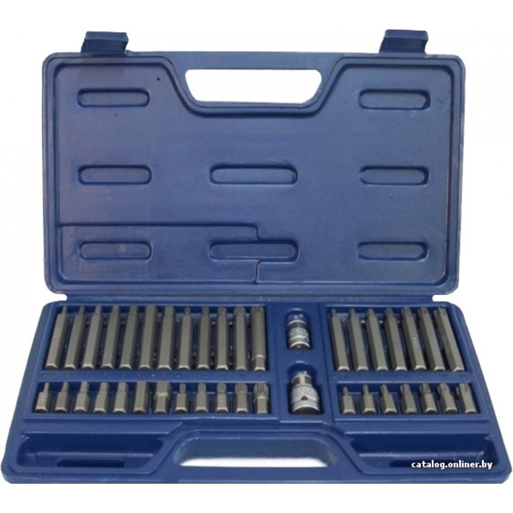 Общая информация Описание Описание Рекламное описание товара, взятое с сайта производителя, в котором кратко сообщается о предназначении и позиционировании модели на рынке. В состав набора входят следующие биты:30мм HEX: 4, 5, 6, 7, 8, 10, 12мм75мм HEX: 4, 5, 6, 7, 8, 10, 12мм30мм SPLINE: M5, M6, M8, M10, M1275мм SPLINE: M5, M6, M8, M10, M1230мм TORX: T20, T25, T30, T40, T45, T50, T5575мм TORX: T20, T25, T30, T40, T45, T50, T55 Основные Тип набора Тип набора Тип набора инструментов. Различают как универсальные, общие наборы так и наборы отдельных инструментов. набор бит Посадочный размер (квадрат) Посадочный размер (квадрат) Торцевые головки и биты имеют квадратный хвостовик определенного типоразмера. Существует 5 стандартных типоразмеров посадочного квадрата, от 1/4 до 1 дюйма. 3/8', 1/2' Количество предметов Количество предметов Количество предметов в наборе. 40 предмет(ов) Комплектация Биты (насадки-отвертки) Биты (насадки-отвертки) Биты - короткие насадки-отвертки. 38 (Hex, Torx, Spline) Адаптер для бит Адаптер для бит Держатель для бит позволяет устанавливать в инструмент различные биты. Как правило, используется магнитный принцип фиксации. (1/2', 3/8')