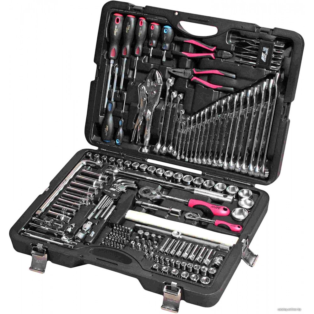 Общая информация Описание Описание Рекламное описание товара, взятое с сайта производителя, в котором кратко сообщается о предназначении и позиционировании модели на рынке. Набор инструментов 156 предметов слесарно-монтажный 1/4',1/2' 6 граней. Основные Тип набора Тип набора Тип набора инструментов. Различают как универсальные, общие наборы так и наборы отдельных инструментов. универсальный набор Посадочный размер (квадрат) Посадочный размер (квадрат) Торцевые головки и биты имеют квадратный хвостовик определенного типоразмера. Существует 5 стандартных типоразмеров посадочного квадрата, от 1/4 до 1 дюйма. 1/4', 1/2' Количество предметов Количество предметов Количество предметов в наборе. 156 предмет(ов) Цвет Цвет Основной цвет модели. красный, серебристый, черный Комплектация Торцевые головки 1/2' Торцевые головки 1/2' Стандартные торцевые головки. Имеют более низкий профиль, чем глубокие торцевые головки и позволяют получить доступ в более труднодоступных местах. 20 предмет(ов) (8, 9, 10, 11, 12, 13, 14, 15, 16, 17, 18, 19, 20, 21, 22, 23, 24, 27, 30, 32 мм) Торцевые головки 1/4' Торцевые головки 1/4' Стандартные торцевые головки. Имеют более низкий профиль, чем глубокие торцевые головки и позволяют получить доступ в более труднодоступных местах. 12 предмет(ов) (4, 4.5, 5, 5.5, 6, 7, 8, 9, 10, 11, 12, 13 мм) Глубокие торцевые головки 1/2' Глубокие торцевые головки 1/2' Глубокие торцевые головки. Имеют более глубокий профиль, чем стандартные торцевые головки. 5 предмет(ов) (14, 15, 17, 19, 22 мм) Глубокие торцевые головки 1/4' Глубокие торцевые головки 1/4' Глубокие торцевые головки. Имеют более глубокий профиль, чем стандартные торцевые головки. 8 предмет(ов) (6, 7, 8, 9, 10, 11, 12, 13 мм) Торцевые головки 1/2' Е-тип Торцевые головки 1/2' Е-тип Торцевые головки 1/2' Е-типа 6 предмет(ов) (Е10, Е12, Е14, Е16, Е18, Е20) Торцевые головки 1/4' Е-тип Торцевые головки 1/4' Е-тип Торцевые головки 3/8' Е-типа 5 предмет(ов) (Е4, Е5, Е6, Е7, Е8) Трещотка Трещотка Инструмент для закручивания/откручивания гаек и болтов в любом направлении. (1/2', 1/4') Кардан Кардан Кардан 1/2', 1/4' Удлинители 1/2' Удлинители 1/2' Удлинитель 1/2'. 2 предмет(ов) (125 и 250 мм) Удлинители 1/4' Удлинители 1/4' Удлинители 1/4' 3 предмет(ов) (50, 100, 150 мм) Головки свечные 1/2' Головки свечные 1/2' Головки свечные 1/2'. 3 предмет(ов) (14, 16, 21 мм) Вороток шарнирный 1/2' Вороток шарнирный 1/2' Вороток шарнирный 1/2'. Переходник Переходник Переходники. 1/4'(M)x3/8'(F), 1/2'(M)x3/8'(F) Накидные ключи Накидные ключи Накидные ключи. 17 предмет(ов) (6, 7, 8, 9, 10, 12, 13, 14, 15, 16, 17, 18, 19, 21, 22, 24 мм) Разрезные ключи Разрезные ключи Разрезные ключи. 8x10 мм, 11x13 мм, 12x14 мм, 17x19 мм Угловые ключи шестигранные Угловые ключи шестигранные Угловые ключи шестигранные. 9 предмет(ов) (1.5, 2, 2.5, 3, 4, 5, 6, 8, 10 мм) Пассатижи Пассатижи Пассатижи. 1 предмет(ов) Кусачки диагональные Кусачки диагональные Кусачки диагональные. Клещи переставные Клещи переставные Клещи переставные. Молоток Молоток Молоток. С деревянной или железной ручками. деревянная ручка Отвертки Отвертки Отвертки различают PH — крестообразная, SL — «плоская», «минусовая» и PZ — крестообразная отвертка с дополнительными направляющими. 7 предмет(ов)(PH, SL) Отвертка под биты Отвертка под биты Отвертки под биты. 1/4' Биты (насадки-отвертки) Биты (насадки-отвертки) Биты - короткие насадки-отвертки. 34 Адаптер для бит Адаптер для бит Держатель для бит позволяет устанавливать в инструмент различные биты. Как правило, используется магнитный прин
