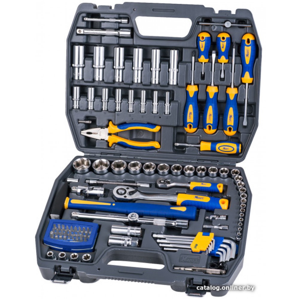 Основные Тип набора Тип набора Тип набора инструментов. Различают как универсальные, общие наборы так и наборы отдельных инструментов. универсальный набор Посадочный размер (квадрат) Посадочный размер (квадрат) Торцевые головки и биты имеют квадратный хвостовик определенного типоразмера. Существует 5 стандартных типоразмеров посадочного квадрата, от 1/4 до 1 дюйма. 1/4', 1/2' Количество предметов Количество предметов Количество предметов в наборе. 109 предмет(ов) Цвет Цвет Основной цвет модели. желтый Комплектация Торцевые головки 1/2' Торцевые головки 1/2' Стандартные торцевые головки. Имеют более низкий профиль, чем глубокие торцевые головки и позволяют получить доступ в более труднодоступных местах. 12 предмет(ов) Торцевые головки 1/4' Торцевые головки 1/4' Стандартные торцевые головки. Имеют более низкий профиль, чем глубокие торцевые головки и позволяют получить доступ в более труднодоступных местах. 12 предмет(ов) Глубокие торцевые головки 1/2' Глубокие торцевые головки 1/2' Глубокие торцевые головки. Имеют более глубокий профиль, чем стандартные торцевые головки. 6 предмет(ов) Глубокие торцевые головки 1/4' Глубокие торцевые головки 1/4' Глубокие торцевые головки. Имеют более глубокий профиль, чем стандартные торцевые головки. 8 предмет(ов) Торцевые головки 1/2' Е-тип Торцевые головки 1/2' Е-тип Торцевые головки 1/2' Е-типа 4 предмет(ов) Трещотка Трещотка Инструмент для закручивания/откручивания гаек и болтов в любом направлении. (1/2', 1/4') Т-образный вороток Т-образный вороток Вороток используется для «отспускания» или затяжки крепежа. 1/4' Кардан Кардан Кардан 1/2', 1/4' Удлинители 1/2' Удлинители 1/2' Удлинитель 1/2'. 2 предмет(ов) Удлинители 1/4' Удлинители 1/4' Удлинители 1/4' 2 предмет(ов) Переходник Переходник Переходники. 1/2'(M)x3/8'(F) Угловые ключи шестигранные Угловые ключи шестигранные Угловые ключи шестигранные. 9 предмет(ов) Пассатижи Пассатижи Пассатижи. Молоток Молоток Молоток. С деревянной или железной ручками. Отвертки Отвертки Отвертки различают PH — крестообразная, SL — «плоская», «минусовая» и PZ — крестообразная отвертка с дополнительными направляющими. 6 предмет(ов)(PH, SL) Биты (насадки-отвертки) Биты (насадки-отвертки) Биты - короткие насадки-отвертки. 32 (Hex, Spline, Phillips) Тестер Тестер Тестер.