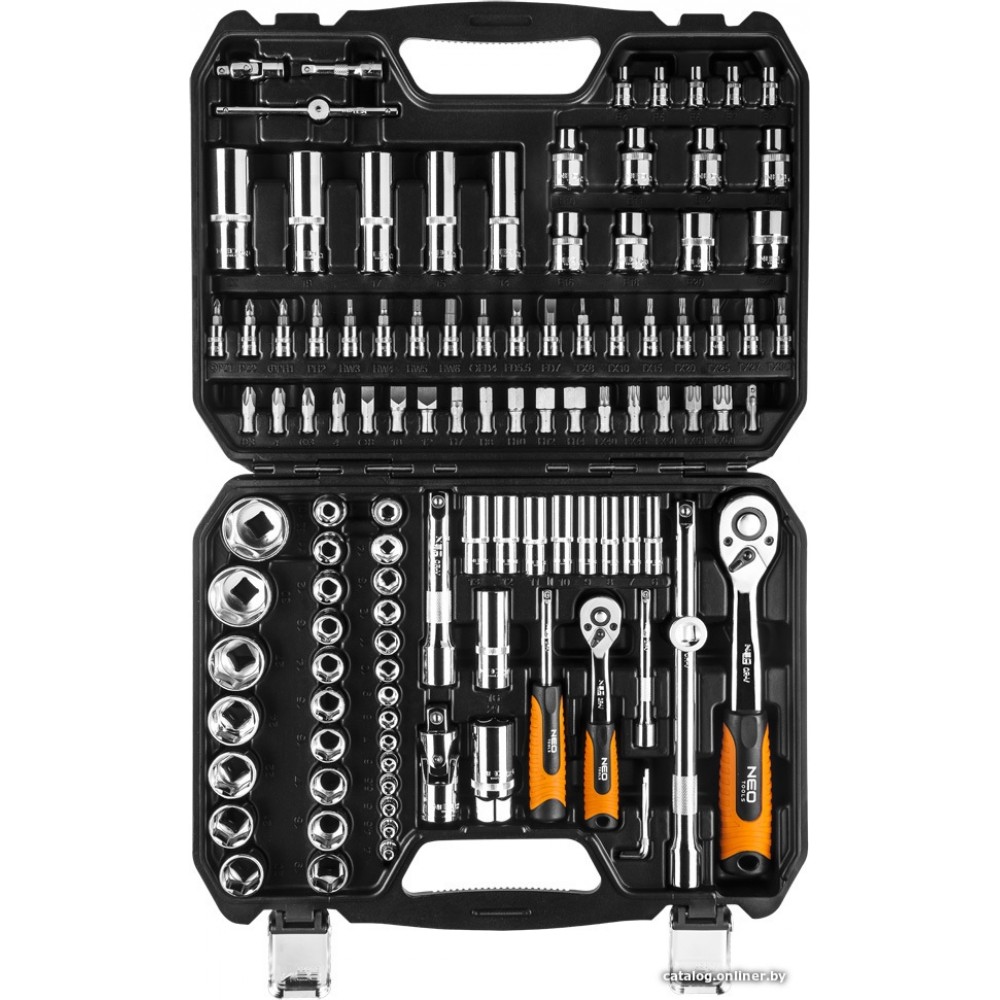 Основные Тип набора Тип набора Тип набора инструментов. Различают как универсальные, общие наборы так и наборы отдельных инструментов. универсальный набор Посадочный размер (квадрат) Посадочный размер (квадрат) Торцевые головки и биты имеют квадратный хвостовик определенного типоразмера. Существует 5 стандартных типоразмеров посадочного квадрата, от 1/4 до 1 дюйма. 1/4', 1/2' Количество предметов Количество предметов Количество предметов в наборе. 110 предмет(ов) Комплектация Комплектация Детальная комплектация. - двенадцатигранные головки 1/2 17 шт.: 10, 11, 12, 13, 14, 15, 16, 17, 18, 19, 20, 21, 22, 24, 27, 30, 32 мм,- головки длинные 1/2 5 шт.: 14, 15, 17, 19, 22 мм,- головки Torx 1/2 8 шт.: E10, E11, E12, E14, E16, E18, E20, E24,- трещотка 1/2,72 зубцов,- вороток Т-образный1/2,- удлинители 1/2 2 шт.: 125 и 250 мм,- свечные головки 1/2,- переходник для наконечников 5, 16,- универсальный удлинитель 1/2,- шестигранные головки 1/4 13 шт.: 4, 4.5, 5, 5.5, 6, 7, 8, 9, 10, 11, 12, 13, 14 мм,- головки длинные 1/4 8 шт.: 6, 7, 8, 9, 10, 11, 12, 13 мм,- головки Torx 1/4 5 шт.: E4, E5, E6, E7, E8,- трещотка 1/4, - держатель для наконечников 1/4, вороток Т-образный1/4 ,- удлинители 1/4 2 шт.: 50 и 100 мм,- универсальный удлинитель 1/4,- гибкий удлинитель 150 мм на 1/4,- головки 1/4 18 шт.: T8, T10, T15, T20, T25, T27, T30, H3, H4, H5, H6 мм, PH1, PH2, PZ1, PZ2, SL4, SL5.5, SL6.5,- наконечники 5, 16 17 шт.: T40, T45, T50, T55, T60 H7, H8, H10, H12, H14 мм, PH3, PH4, PZ3, PZ4, 8, 10, 12 мм,- шестигранные ключи 4 шт.: 1.3, 1.5, 2, 2.5 мм. Комплектация Торцевые головки 1/2' Торцевые головки 1/2' Стандартные торцевые головки. Имеют более низкий профиль, чем глубокие торцевые головки и позволяют получить доступ в более труднодоступных местах. 17 предмет(ов) Торцевые головки 1/4' Торцевые головки 1/4' Стандартные торцевые головки. Имеют более низкий профиль, чем глубокие торцевые головки и позволяют получить доступ в более труднодоступных местах. 13 предмет(ов) Глубокие торцевые головки 1/2' Глубокие торцевые головки 1/2' Глубокие торцевые головки. Имеют более глубокий профиль, чем стандартные торцевые головки. 5 предмет(ов) Глубокие торцевые головки 1/4' Глубокие торцевые головки 1/4' Глубокие торцевые головки. Имеют более глубокий профиль, чем стандартные торцевые головки. 8 предмет(ов) Торцевые головки 1/2' Е-тип Торцевые головки 1/2' Е-тип Торцевые головки 1/2' Е-типа 8 предмет(ов) Торцевые головки 1/4' Е-тип Торцевые головки 1/4' Е-тип Торцевые головки 3/8' Е-типа 5 предмет(ов) Трещотка Трещотка Инструмент для закручивания/откручивания гаек и болтов в любом направлении. (1/2', 1/4') Т-образный вороток Т-образный вороток Вороток используется для «отспускания» или затяжки крепежа. 1/2', 1/4' Кардан Кардан Кардан 1/2', 1/4' Удлинители 1/2' Удлинители 1/2' Удлинитель 1/2'. 2 предмет(ов) Удлинители 1/4' Удлинители 1/4' Удлинители 1/4' 2 предмет(ов) Головки свечные 1/2' Головки свечные 1/2' Головки свечные 1/2'. Адаптер для вставок (бит) Адаптер для вставок (бит) Адаптер для вставок (бит) 1/4' Угловые ключи шестигранные Угловые ключи шестигранные Угловые ключи шестигранные. 4 предмет(ов) Отвертка под биты Отвертка под биты Отвертки под биты. 1/4' Биты (насадки-отвертки) Биты (насадки-отвертки) Биты - короткие насадки-отвертки. 17 (Hex, Torx, Phillips, Pozidriv, Slotted) Головки со вставкой Головки со вставкой Головки со вставкой. 18 (1/4')
