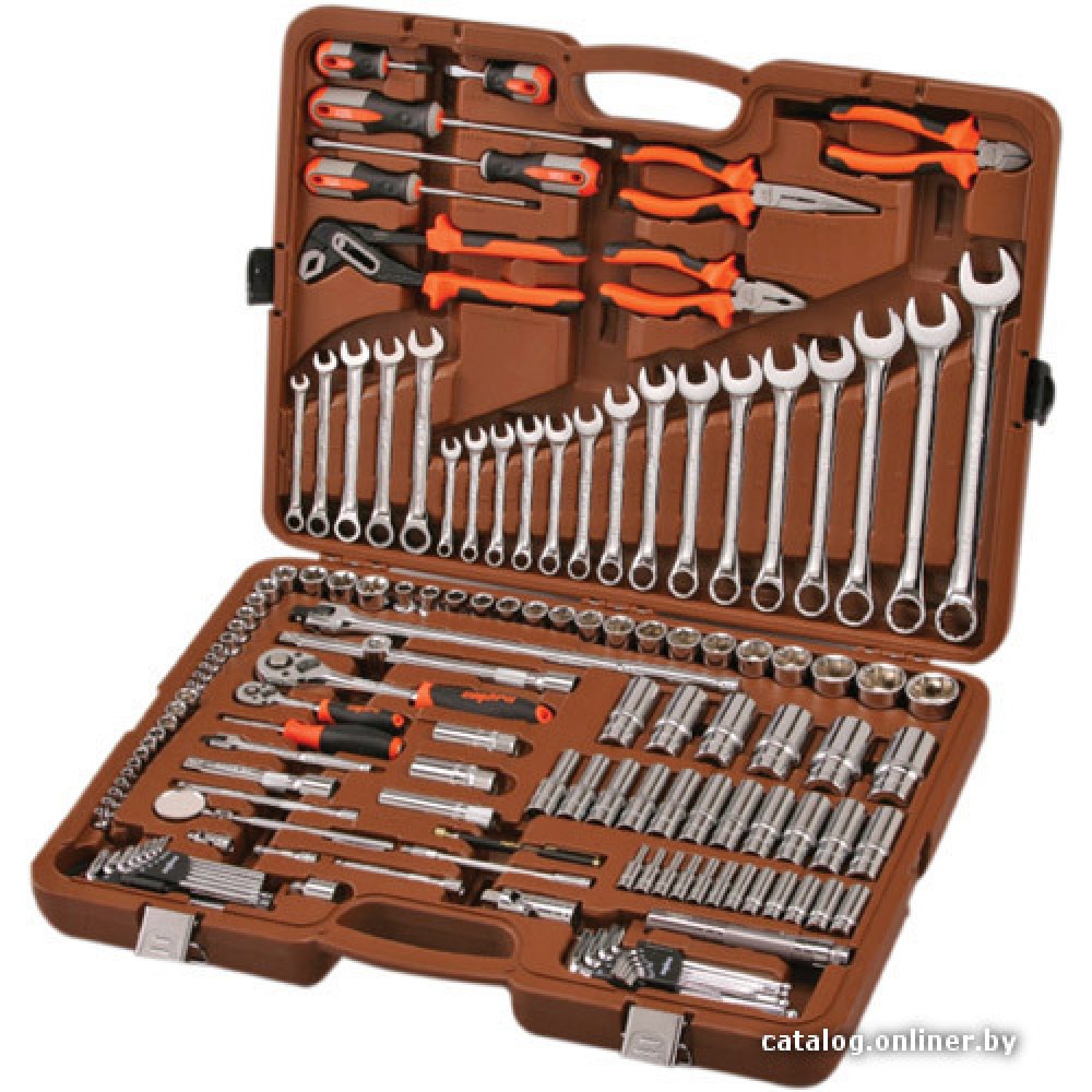 Основные Тип набора Тип набора Тип набора инструментов. Различают как универсальные, общие наборы так и наборы отдельных инструментов. универсальный набор Посадочный размер (квадрат) Посадочный размер (квадрат) Торцевые головки и биты имеют квадратный хвостовик определенного типоразмера. Существует 5 стандартных типоразмеров посадочного квадрата, от 1/4 до 1 дюйма. 1/4', 3/8', 1/2' Количество предметов Количество предметов Количество предметов в наборе. 141 предмет(ов) Комплектация Торцевые головки 1/2' Торцевые головки 1/2' Стандартные торцевые головки. Имеют более низкий профиль, чем глубокие торцевые головки и позволяют получить доступ в более труднодоступных местах. 17 предмет(ов) (10,11,12,13,14,15,16,17,18,19,20,21,22,24,27, 30,32 мм) Торцевые головки 1/4' Торцевые головки 1/4' Стандартные торцевые головки. Имеют более низкий профиль, чем глубокие торцевые головки и позволяют получить доступ в более труднодоступных местах. 12 предмет(ов) (4,4.5,5,5.5,6,7,8,9,10,11,12,13 мм) Глубокие торцевые головки 1/2' Глубокие торцевые головки 1/2' Глубокие торцевые головки. Имеют более глубокий профиль, чем стандартные торцевые головки. 17 предмет(ов) (10,11,12,13,14,15,16,17,18,19,20,21,22,24,27,30,32 мм) Глубокие торцевые головки 1/4' Глубокие торцевые головки 1/4' Глубокие торцевые головки. Имеют более глубокий профиль, чем стандартные торцевые головки. 12 предмет(ов) (4,4.5,5,5.5,6,7,8,9,10,11,12,13 мм) Торцевые головки 1/2' Е-тип Торцевые головки 1/2' Е-тип Торцевые головки 1/2' Е-типа 3 предмет(ов) (E20,E22,E24) Торцевые головки 3/8' Е-тип Торцевые головки 3/8' Е-тип Торцевые головки 3/8' Е-тип 6 предмет(ов) (E10,E11,E12,E14,E16,E18) Торцевые головки 1/4' Е-тип Торцевые головки 1/4' Е-тип Торцевые головки 3/8' Е-типа 5 предмет(ов) (E4,E5,E6,E7,E8) Торцовочный ключ 9 предмет(ов) (Т10,Т15,Т20,Т25,Т27,Т30,Т40,Т45,Т50) Трещотка Трещотка Инструмент для закручивания/откручивания гаек и болтов в любом направлении. (1/2', 1/4') Т-образный вороток Т-образный вороток Вороток используется для «отспускания» или затяжки крепежа. 1/2', 1/4' Кардан Кардан Кардан 1/2', 1/4' Удлинители 1/2' Удлинители 1/2' Удлинитель 1/2'. 2 предмет(ов) (125 и 250 мм) Удлинители 1/4' Удлинители 1/4' Удлинители 1/4' 3 предмет(ов) (50, 100 и 150 мм) Головки свечные 3/8' Головки свечные 3/8' Головки свечные 1/2'. 3 предмет(ов) Гибкий удлинитель 1/4' Гибкий удлинитель 1/4' Гибкий удлинитель 1/4'. Адаптер для вставок (бит) Адаптер для вставок (бит) Адаптер для вставок (бит) 1/2' Переходник Переходник Переходники. 3/8'(M)x1/2'(F) Комбинированные ключи Комбинированные ключи Комбинированные ключи. 20 предмет(ов) (8,9,10,11,12,13,14,15,16,17,18,19,21,22,24 мм / 8,10,12,13,14 мм) Шестигранные ключи Шестигранные ключи Шестигранные ключи. 10 предмет(ов) (1.5,2,2.5,3,4,5,6,7,8,10 мм) Магнитный извлекатель Магнитный извлекатель Магнитный извлекатель. Пассатижи Пассатижи Пассатижи. 1 предмет(ов) Кусачки диагональные Кусачки диагональные Кусачки диагональные. 150 мм Длинногубцы Длинногубцы Длинногубцы. Клещи переставные Клещи переставные Клещи переставные. 250 мм Отвертки Отвертки Отвертки различают PH — крестообразная, SL — «плоская», «минусовая» и PZ — крестообразная отвертка с дополнительными направляющими. 5 предмет(ов) Отвертка под биты Отвертка под биты Отвертки под биты. 1/4' Фонарь