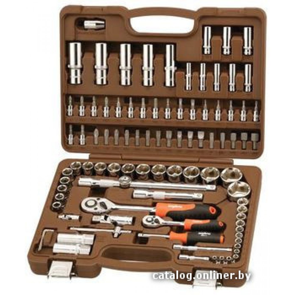 Общая информация Описание Описание Рекламное описание товара, взятое с сайта производителя, в котором кратко сообщается о предназначении и позиционировании модели на рынке. Универсальный набор 1/2' и 1/4' состоящий из 94 предметов. Основные Тип набора Тип набора Тип набора инструментов. Различают как универсальные, общие наборы так и наборы отдельных инструментов. универсальный набор Посадочный размер (квадрат) Посадочный размер (квадрат) Торцевые головки и биты имеют квадратный хвостовик определенного типоразмера. Существует 5 стандартных типоразмеров посадочного квадрата, от 1/4 до 1 дюйма. 1/4', 1/2' Количество предметов Количество предметов Количество предметов в наборе. 94 предмет(ов) Комплектация Торцевые головки 1/2' Торцевые головки 1/2' Стандартные торцевые головки. Имеют более низкий профиль, чем глубокие торцевые головки и позволяют получить доступ в более труднодоступных местах. 17 предмет(ов) (10, 11, 12, 13, 14, 15, 16, 17, 18, 19, 21, 22, 24, 27, 30, 32 мм) Торцевые головки 1/4' Торцевые головки 1/4' Стандартные торцевые головки. Имеют более низкий профиль, чем глубокие торцевые головки и позволяют получить доступ в более труднодоступных местах. 13 предмет(ов) (4, 4.5, 5, 5.5, 6, 7, 8, 9, 10, 11, 12, 13, 14 мм) Глубокие торцевые головки 1/2' Глубокие торцевые головки 1/2' Глубокие торцевые головки. Имеют более глубокий профиль, чем стандартные торцевые головки. 6 предмет(ов) (14, 15, 17, 19, 22 мм) Глубокие торцевые головки 1/4' Глубокие торцевые головки 1/4' Глубокие торцевые головки. Имеют более глубокий профиль, чем стандартные торцевые головки. 8 предмет(ов) (6, 7, 8, 9, 10, 11, 12, 13 мм) Трещотка Трещотка Инструмент для закручивания/откручивания гаек и болтов в любом направлении. (1/2', 1/4') Т-образный вороток Т-образный вороток Вороток используется для «отспускания» или затяжки крепежа. 1/4' Кардан Кардан Кардан 1/2', 1/4' Удлинители 1/2' Удлинители 1/2' Удлинитель 1/2'. 2 предмет(ов) (125 мм, 250 мм) Удлинители 1/4' Удлинители 1/4' Удлинители 1/4' 2 предмет(ов) (50 мм, 100 мм) Головки свечные 1/2' Головки свечные 1/2' Головки свечные 1/2'. 2 предмет(ов) (16 мм, 21 мм) Адаптер для вставок (бит) Адаптер для вставок (бит) Адаптер для вставок (бит) 1/2' Шестигранные ключи Шестигранные ключи Шестигранные ключи. 3 предмет(ов) (1.5, 2, 2.5 мм) Отвертка под биты Отвертка под биты Отвертки под биты. 1/4' Биты (насадки-отвертки) Биты (насадки-отвертки) Биты - короткие насадки-отвертки. 34 Адаптер для бит Адаптер для бит Держатель для бит позволяет устанавливать в инструмент различные биты. Как правило, используется магнитный принцип фиксации. (1/2')