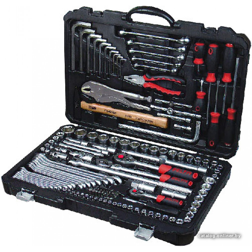 Основные Тип набора Тип набора Тип набора инструментов. Различают как универсальные, общие наборы так и наборы отдельных инструментов. универсальный набор Посадочный размер (квадрат) Посадочный размер (квадрат) Торцевые головки и биты имеют квадратный хвостовик определенного типоразмера. Существует 5 стандартных типоразмеров посадочного квадрата, от 1/4 до 1 дюйма. 1/4', 3/8', 1/2' Количество предметов Количество предметов Количество предметов в наборе. 142 предмет(ов) Цвет Цвет Основной цвет модели. красный, серебристый, черный Комплектация Торцевые головки 1/2' Торцевые головки 1/2' Стандартные торцевые головки. Имеют более низкий профиль, чем глубокие торцевые головки и позволяют получить доступ в более труднодоступных местах. 19 предмет(ов) (8-10-12-13-14-15-16-17-18-19-20-21-22-23-24-25-27-30-32mm) Торцевые головки 3/8' Торцевые головки 3/8' Стандартные торцевые головки. Имеют более низкий профиль, чем глубокие торцевые головки и позволяют получить доступ в более труднодоступных местах. 15 предмет(ов) (6-7-8-9-10-11-12-13-14-15-17-18-19-21-22 mm) Торцевые головки 1/4' Торцевые головки 1/4' Стандартные торцевые головки. Имеют более низкий профиль, чем глубокие торцевые головки и позволяют получить доступ в более труднодоступных местах. 9 предмет(ов) (4-4.5-5-5.5-6-7-8-9-10 mm) Торцевые головки 1/2' Е-тип Торцевые головки 1/2' Е-тип Торцевые головки 1/2' Е-типа 5 предмет(ов) (E10-E12-E14-E16-E20) Торцевые головки 1/4' Е-тип Торцевые головки 1/4' Е-тип Торцевые головки 3/8' Е-типа 5 предмет(ов) (E4-E5-E6-E7-E8) Трещотка Трещотка Инструмент для закручивания/откручивания гаек и болтов в любом направлении. (1/2', 3/8', 1/4') Т-образный вороток Т-образный вороток Вороток используется для «отспускания» или затяжки крепежа. 1/2', 3/8', 1/4' Кардан Кардан Кардан 1/2', 3/8', 1/4' Удлинители 1/2' Удлинители 1/2' Удлинитель 1/2'. 2 предмет(ов) Удлинители 3/8' Удлинители 3/8' Удлинители 3/8' 2 предмет(ов) Удлинители 1/4' Удлинители 1/4' Удлинители 1/4' 2 предмет(ов) Головки свечные 1/2' Головки свечные 1/2' Головки свечные 1/2'. 2 предмет(ов) Гибкий удлинитель 1/4' Гибкий удлинитель 1/4' Гибкий удлинитель 1/4'. Переходник Переходник Переходники. 1/4'(M)x3/8'(F), 1/2'(M)x3/8'(F) Комбинированные ключи Комбинированные ключи Комбинированные ключи. 17 предмет(ов) (6-7-8-9-10-11-12-13-14-15-16-17-18-19-21-22-24mm) Накидные ключи Накидные ключи Накидные ключи. 5 предмет(ов) (8x10, 10x12, 11x13, 12x14, 17x19 mm) Угловые ключи шестигранные Угловые ключи шестигранные Угловые ключи шестигранные. 10 предмет(ов) (2.5-3-4-5-6-7-8-10-12-14mm) Пассатижи Пассатижи Пассатижи. 1 предмет(ов) Ключ разводной Ключ разводной Ключ разводной. 1 предмет(ов) Молоток Молоток Молоток. С деревянной или железной ручками. деревянная ручка Отвертки Отвертки Отвертки различают PH — крестообразная, SL — «плоская», «минусовая» и PZ — крестообразная отвертка с дополнительными направляющими. 6 предмет(ов) Отвертка под биты Отвертка под биты Отвертки под биты. Биты (насадки-отвертки) Биты (насадки-отвертки) Биты - короткие насадки-отвертки. 26 Адаптер для бит Адаптер для бит Держатель для бит позволяет устанавливать в инструмент различные биты. Как правило, используется магнитный принцип фиксации. (1/4')